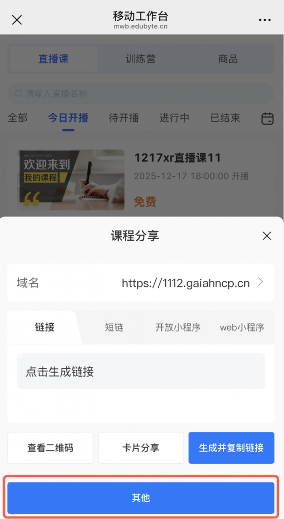 1、移动工作台支持APP课程口令