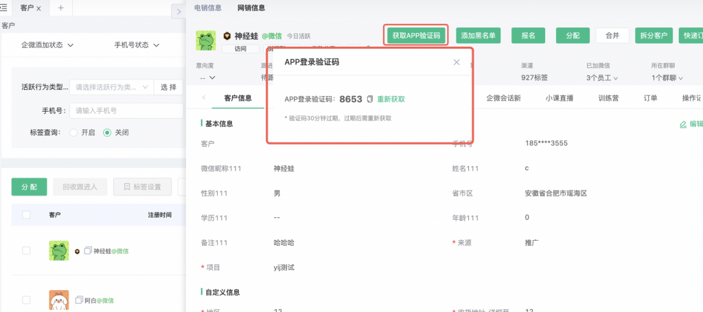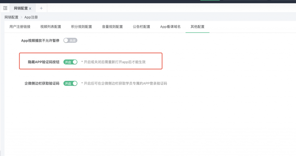 10、支持APP登录界面隐藏获取验证码按钮,网销配置-APP注册-其他配置中支持隐藏APP登录界面的获取验证码按钮