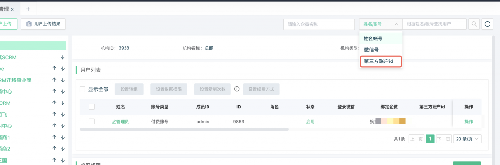 11、人员管理支持三方账号ID搜索& 免费账号可以绑定第三方账号