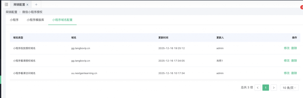 6、套壳web小程序访问域名、授权域名、投放域名支持系统中配置