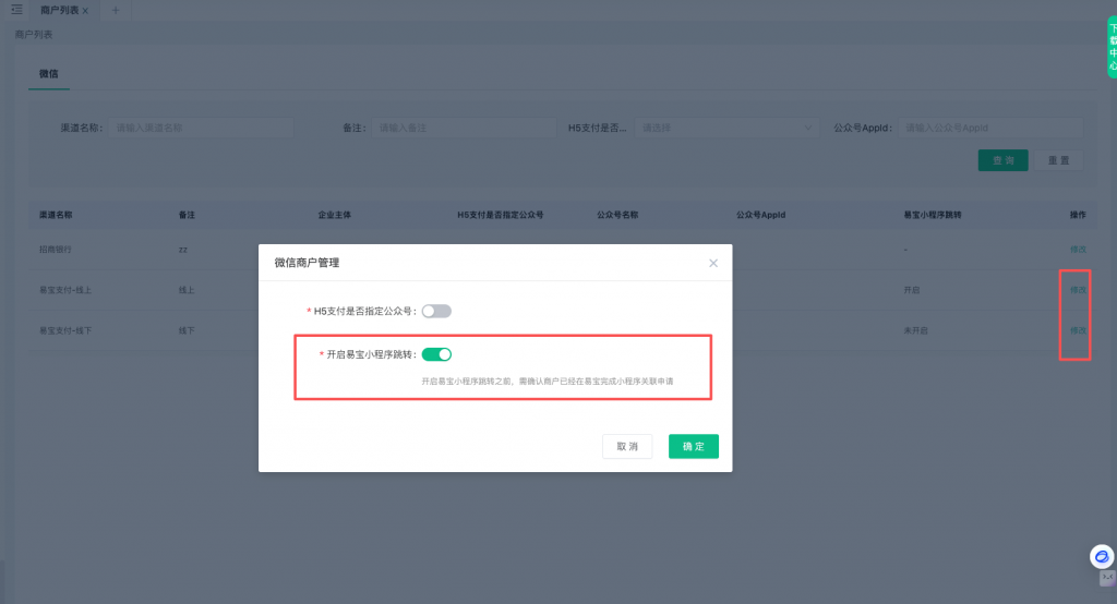 开启此功能项目,需要提前联系易宝客服,将对应商户编码与易宝小程序进行关联。