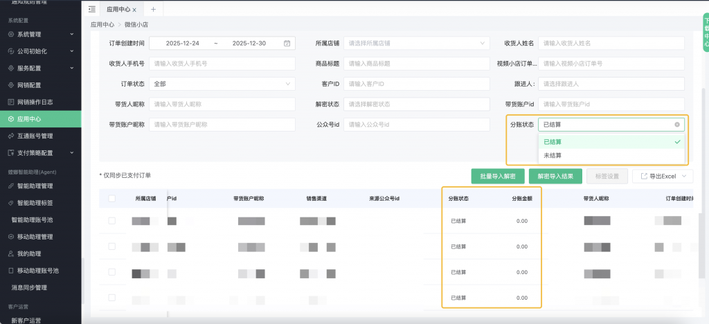 3、微信小店订单列表中增加分佣结算状态与结算金额字段
